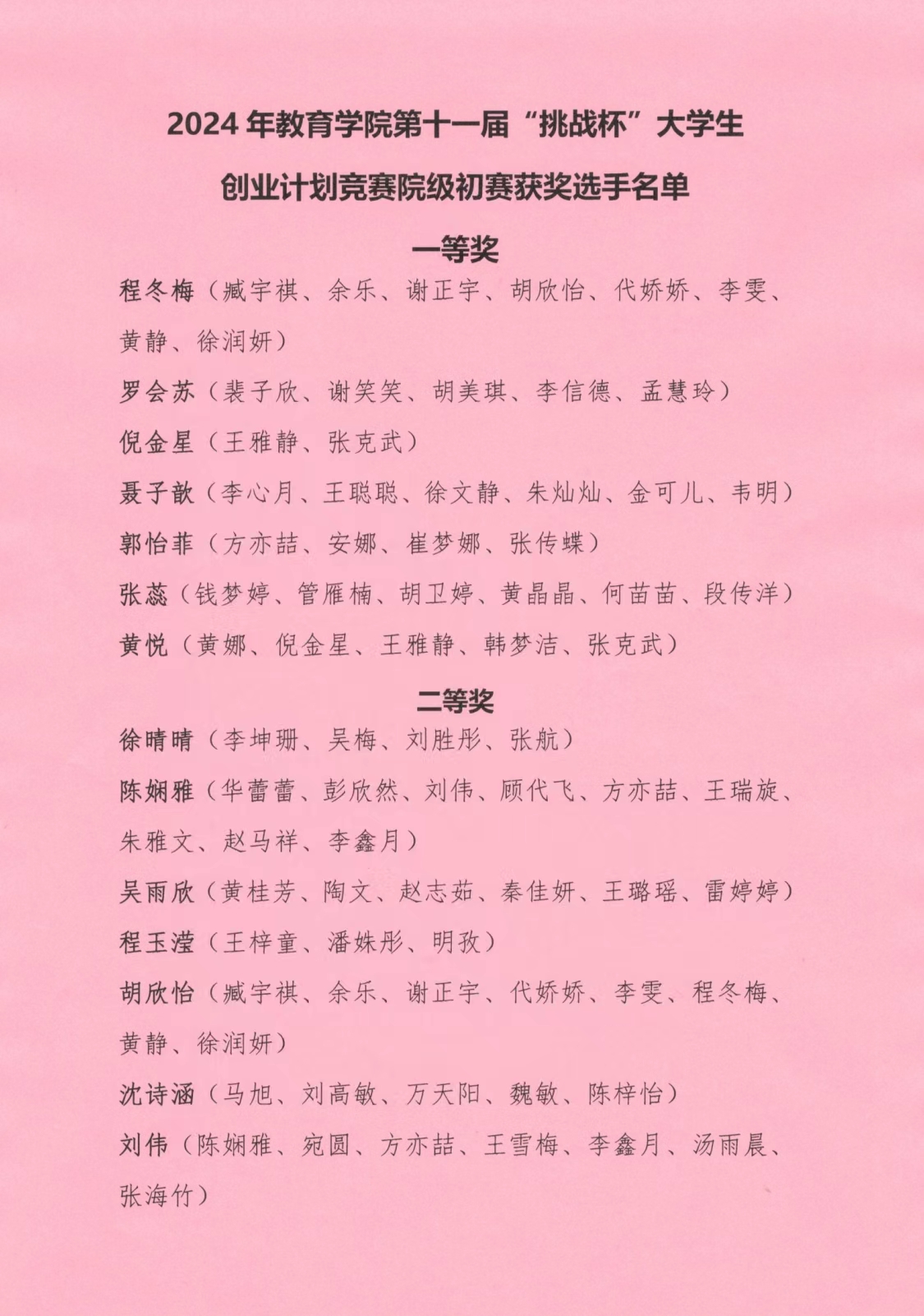 2024年XK星空体育第十一届“挑战杯”大学生创业计划竞赛院级初赛获奖选手名单