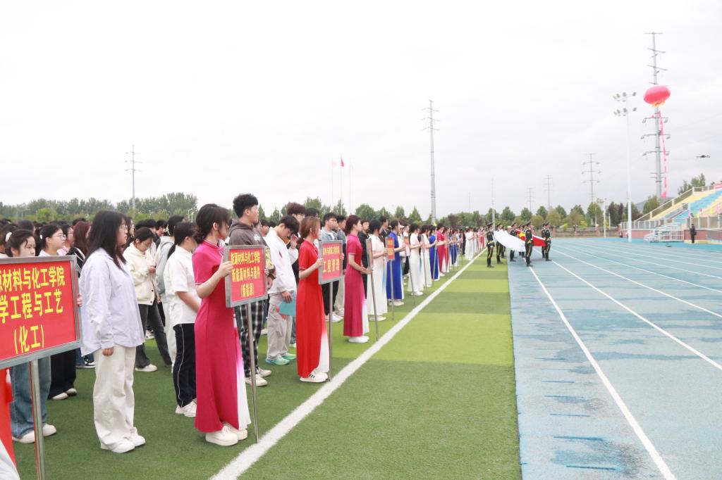 入场仪式结束后,全体人员起立,奏唱国歌。激昂的国歌声响彻田径场上空,激发了每一位在场人员的爱国情怀和民族自豪感。