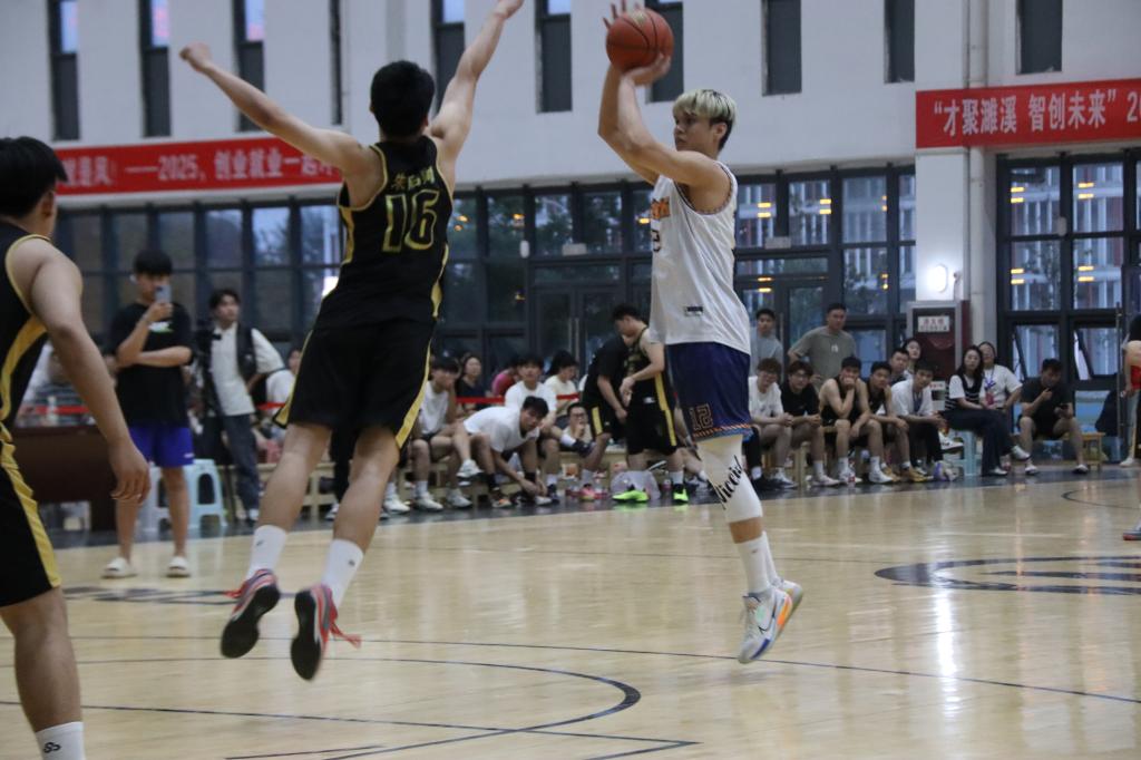 最令人期待的全场5v5比赛压轴登场。集梦风暴队凭借专业素养展开攻势,通过精准投篮和团队配合连续得分。淮北理工联队沉着应对,加强防守并伺机反击。双方球员的精彩表现赢得现场观众阵阵掌声,比赛气氛热烈。