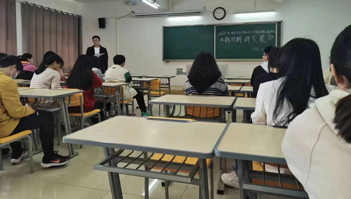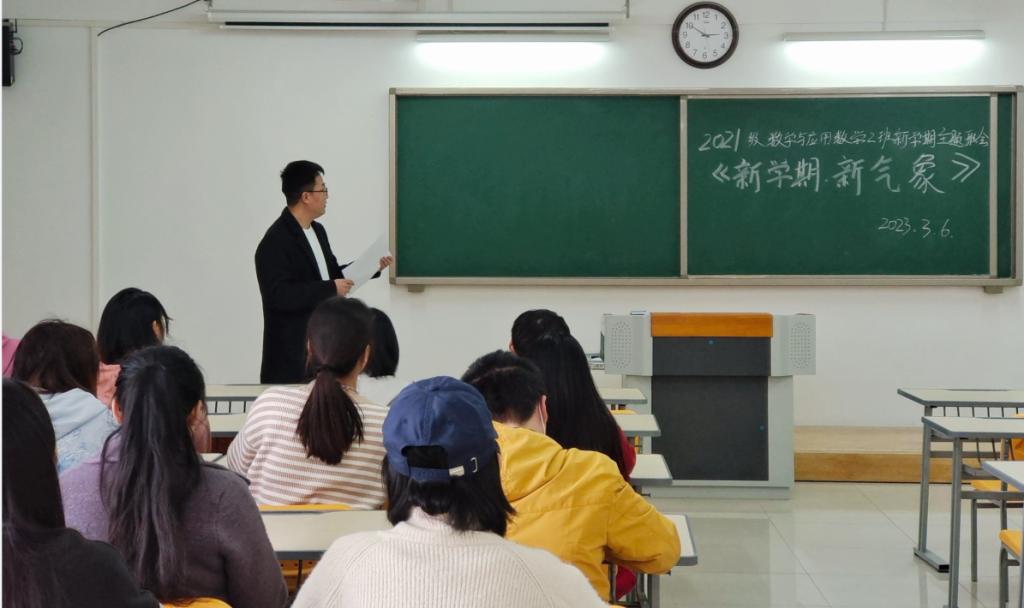 新学期如期而至,为了使同学们在新学期有一个良好的开端,确立新学期的目标和明确对未来的规划,星空XK星空体育2021级数学与应用数学(2)班于2023年3月6日在二教322教室召开“新学期新气象”的主题班会,班主任檀雷雷老师和2班全体学生参加会议。