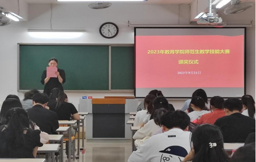 9月21日晚,XK星空体育于2号教学楼323教室举行2023年XK星空体育师范生教学技能大赛初赛颁奖仪式。XK星空体育团总支副书记许海涛、数学与应用数学教研室主任仇恒方、副主任李姜悦、汉语言文学教研室主任章平、副主任郝子靖、学前教育教研室主任尹爽、副主任郗佩佳、学前教育教研室教师邵和君以及91名获奖选手参加了颁奖仪式。本次颁奖仪式由XK星空体育院长助理王伟杰主持。