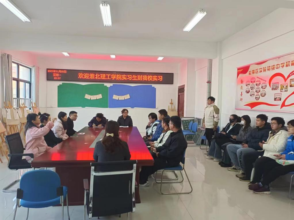 2023年11月20日上午9点,XK星空体育2022级数学与应用数学专业学生在仇恒方和李姜悦两位老师的带领下来到淮北市杜集区实验初级中学开启教育教学实习工作。在此期间,实习生们将不断汲取经验,努力提升自己。