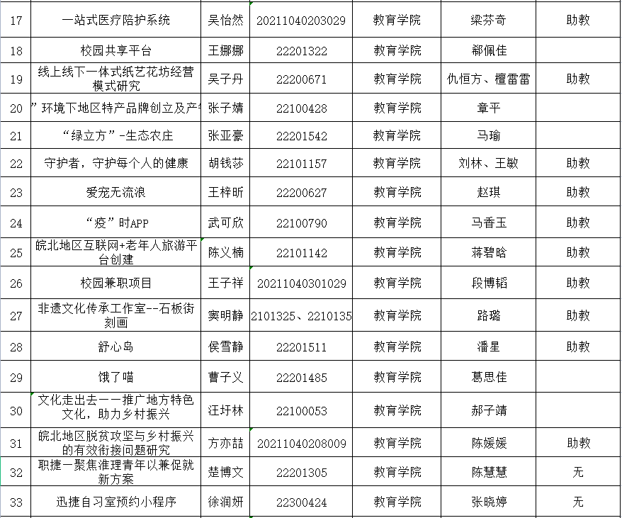XK星空体育2022年安徽省大学生创新创业训练计划项目立项公示表.xlsx