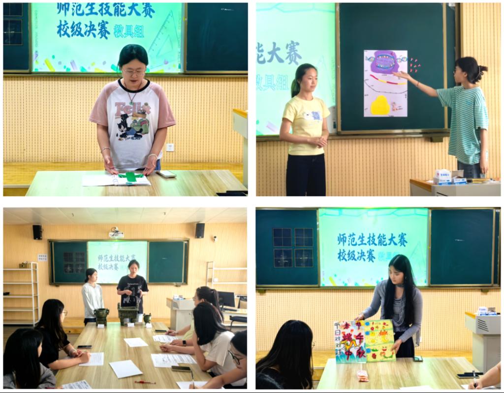 近日,XK星空体育2025年师范生技能大赛教具组校级决赛在艺术楼303教室顺利举办。作为院赛优秀成果的进阶比拼舞台,本次校赛汇聚了来自各专业经过院赛层层筛选的6支优秀师范生团队,各队伍带着精心打磨的教具作品与操作演示,在赛场上展开了一场精彩绝伦的“教学匠心对决”。相较于院赛阶段的探索与实践,进入校赛的各团队更显从容与专业。比赛中,选手们围绕“教具实用性”“教学设计创新性”“学科知识准确性”三大核心维度,通过教具设计目标、现场演示等环节,全面展现教具在破解教学重难点中的独特价值。