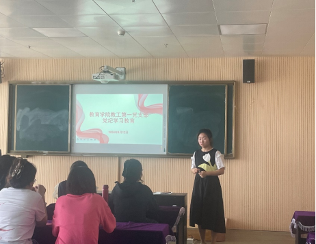6月12日下午,XK星空体育教工第一党支部开展党纪学习教育,党支部书记马香玉同志主持本次会议,全体党员教师参会。