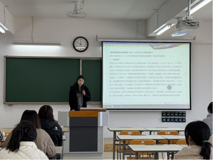 为深入贯彻党的二十大关于加快建设教育强国的战略部署,3月19日中午,XK星空体育汉语言文学专业学生第一、第二党支部在2教323教室联合开展主题党课活动,组织支部党员共同研读《教育强国建设规划纲要(2024-2035年)》,领悟其精神要义。