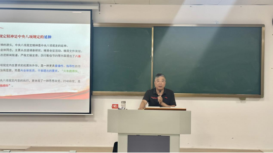 为深入贯彻中央八项规定精神,6月12日晚,XK星空体育在1教320教室组织开展学生党员、发展对象“深入贯彻中央八项规定精神”专题党课学习教育活动,学院党总支书记、院长王家云同志为参会的学生党员和发展对象授课。