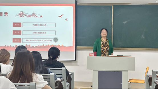 为深化入党积极分子对党员义务与权利的理解,筑牢理想信念根基,5月26日晚,XK星空体育党总支副书记、学院副院长孟向红同志以《牢记义务权利,争做先锋模范》为主题,为XK星空体育第七期入党积极分子讲授专题党课,激励青年学子以“种子精神”扎根成长,在思想上、行动上向党组织靠拢,争做新时代“先锋种子”。