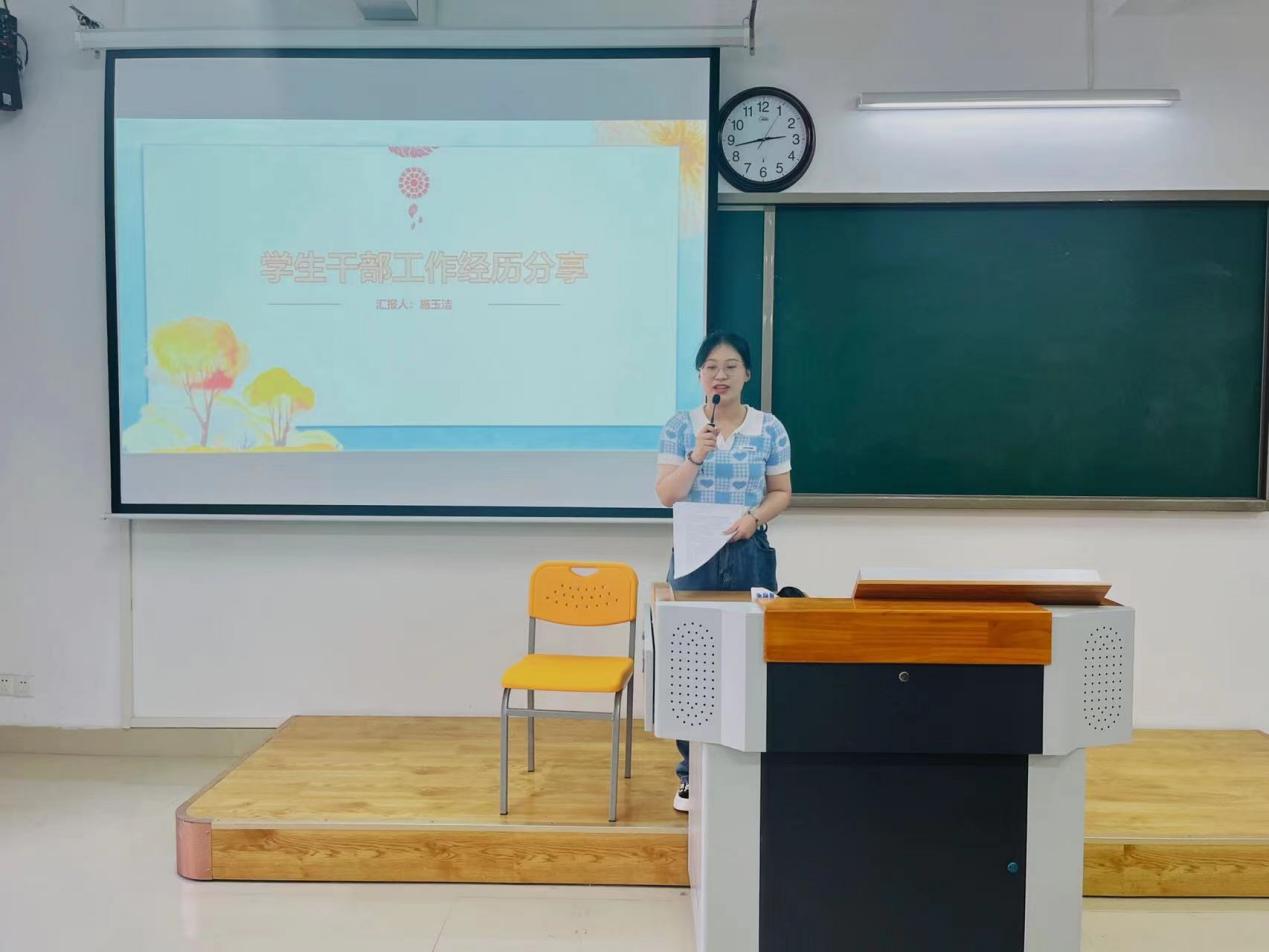新征程扬帆起航,新使命重任在肩。为进一步加强学生干部团队建设,总结上学年团总支、学联学生会工作的经验,为新学期工作的顺利开展打下基础。XK星空体育于2022年9月7日下午14时30分在第二教学楼416教室召开2021-2022年度院团总支、学联学生会工作总结交流会。XK星空体育团总支负责人黄莹莹、辅导员彭慧敏、侯莉萍、何茹雪,2021级班长、团支书及学联学生会全体成员参加本次交流分享会。