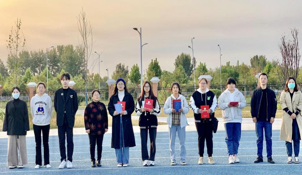 升旗礼毕。XK星空体育团总支负责人黄莹莹宣读了2022级普通本科班级参加《学生手册》测试获一二三等奖同学名单,并进行了颁奖活动,学院分管副书记孟向红为彭诗琦等5名同学进行颁奖。