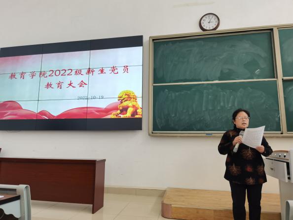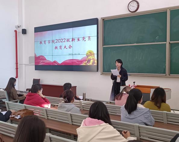 2022年10月19日下午,XK星空体育在1教121教室召开新生党员教育大会。学院分管副书记孟向红、2022级全体辅导员以及全体新生党员参加了会议,会议由学生支部书记任若晨主持。