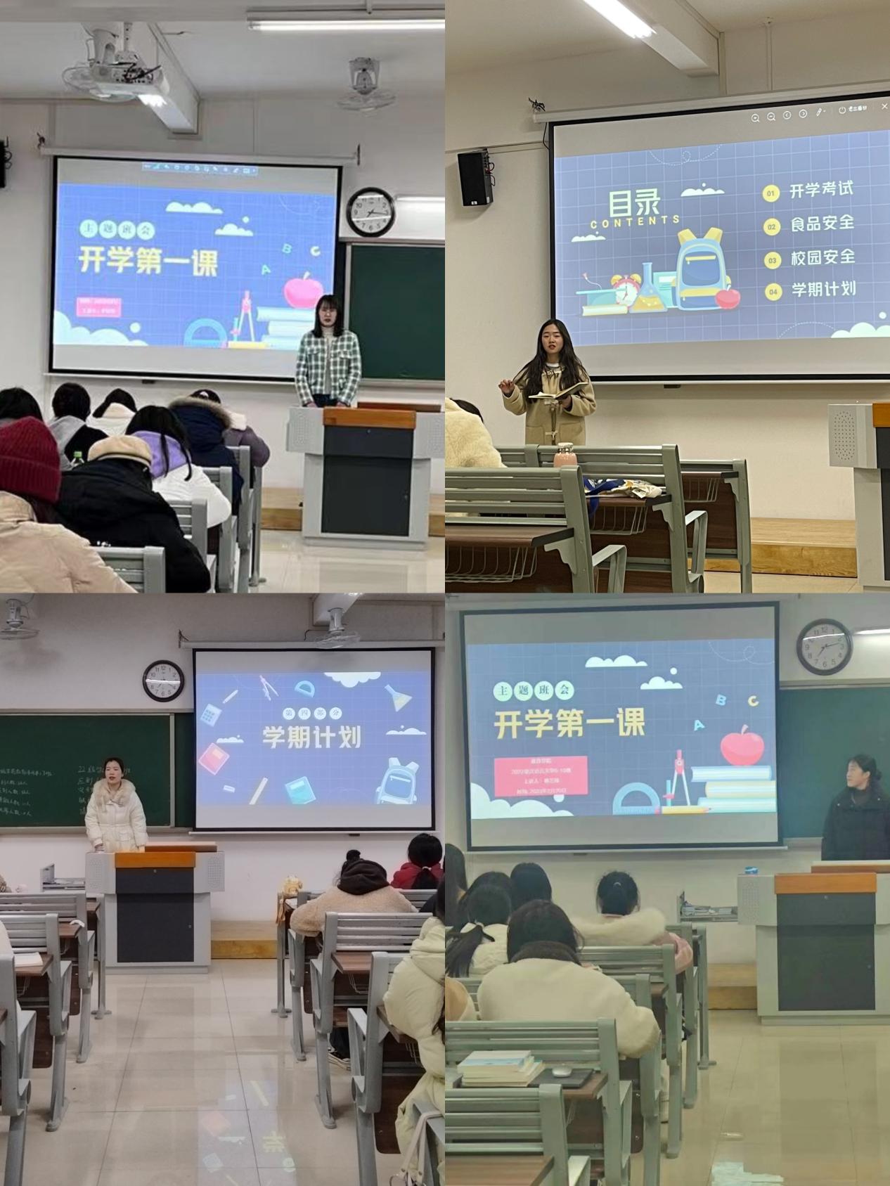 辅导员老师首先欢迎同学们平安返校,并对同学们寒假的学习生活进行交流讨论,随后辅导员提醒同学们新学期时间紧任务重,上学期复习答疑和期末考试的日程近在眼前,希望同学们认真做好期末考试的复习备考工作,要做到诚信应考不作弊,并建议同学们遇到复习疑点难点应及时与任课老师沟通,以保证对知识点的熟练掌握。
