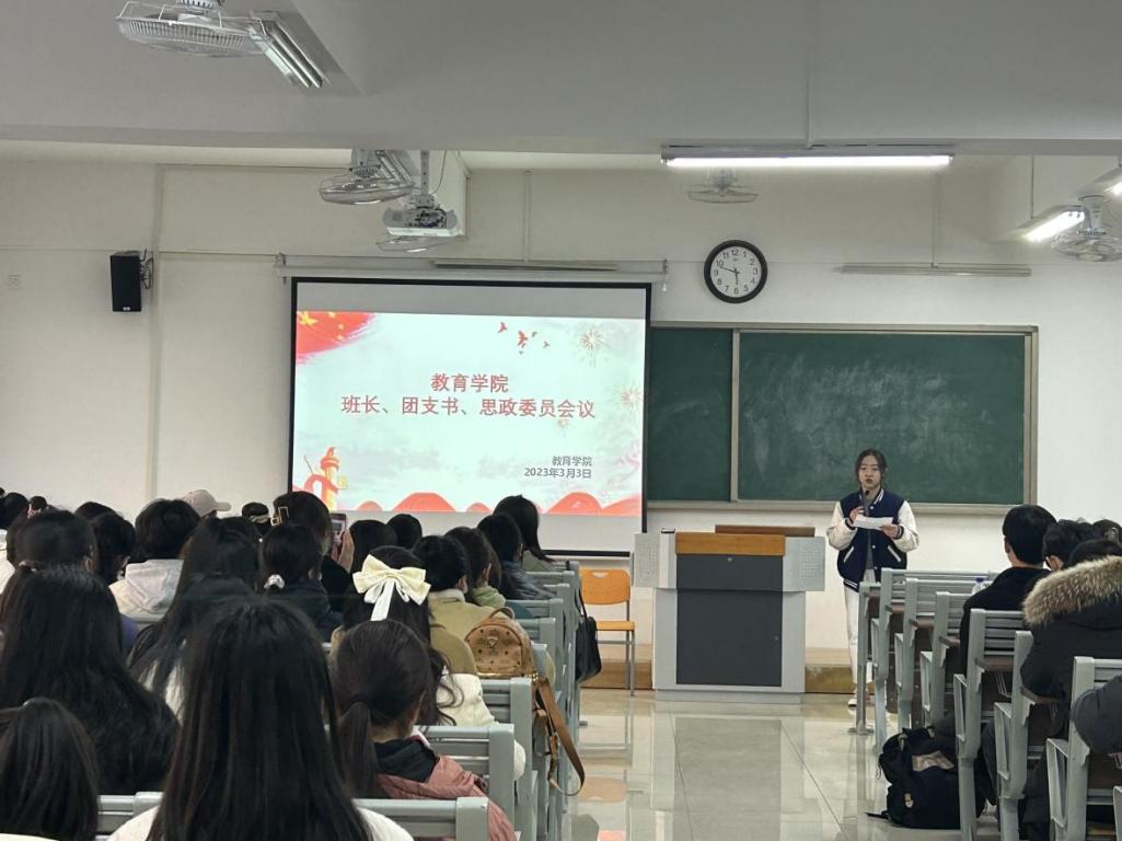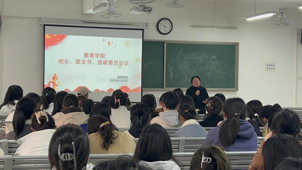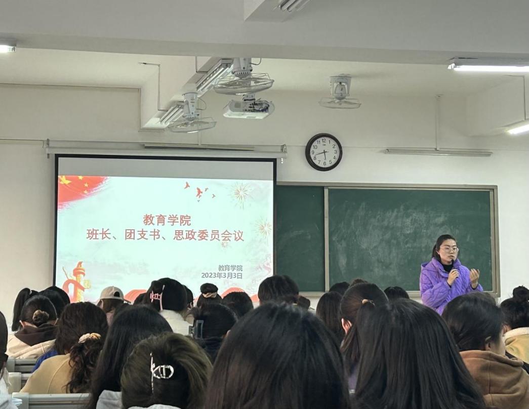 为提高我院学生干部的工作能力和个人素养,加强学生与老师之间的交流,更好地开展今后的学生工作,3月3日下午,XK星空体育于1教420召开新学期第一次班长、团支书、思政委员工作会议,会议由我院团总支书记黄莹莹老师主持,孟向红院长、辅导员老师陈慧慧、许海涛及2022级49个班班长、团支书和思政委员参加。