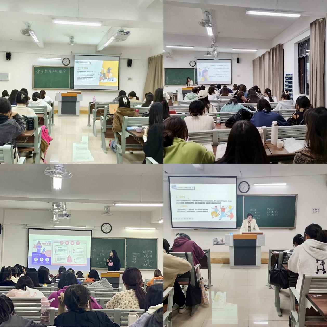 辅导员老师们以“珍惜生命,学会感恩”为主题,围绕“怎样调节应激反应、学会调控情绪、保护身体健康”三个环节进行展开,告诉同学们生命的珍贵,一个生命的诞生只有万分之一的概率,每一个生命的诞生都充满期待、意义和希望。教育同学们生命个体融入到家庭和集体中才会更有意义,从而拓展生命的宽度,引发对于生命的珍惜。辅导员老师告诉同学们每个人的情绪都是变化的,在生活中遇到紧张,不安时自己可以通过深呼吸、心理暗示、肢体放松、转移注意力等合理的方式缓解自己的情绪,并且在遇到难过时,也可以向他人倾诉,参加体育运动等合理适当的方式调节自己的情绪。
