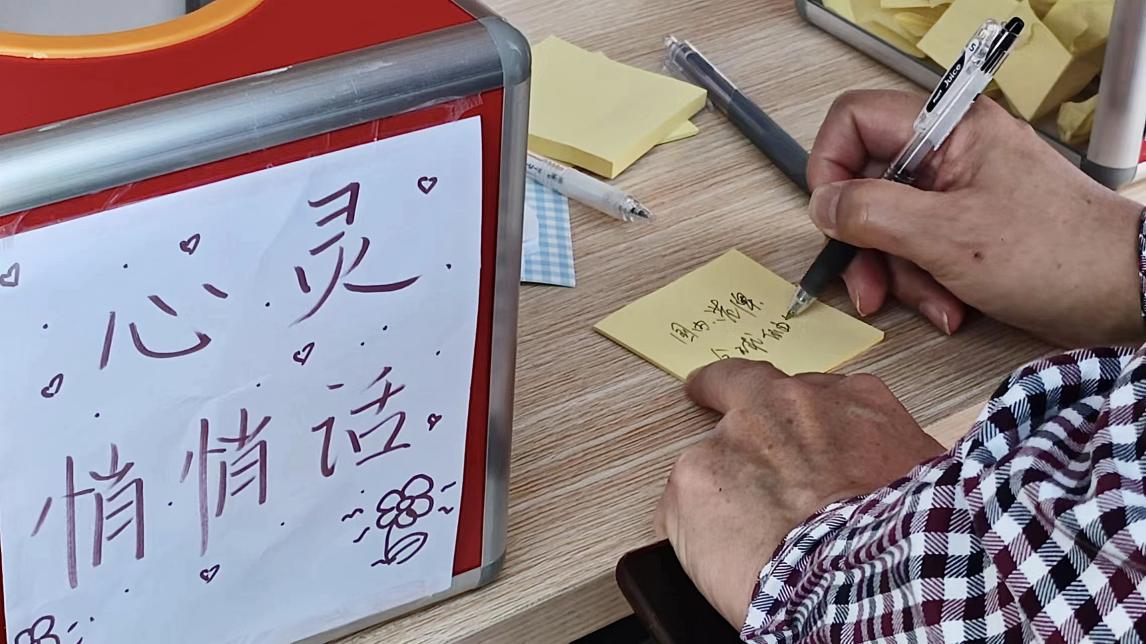 在开展活动期间,志愿者们分别命名“心愿便利贴”和“心灵悄悄话”两个心愿箱作为桥梁,参与者可以通过写下便利贴来抒发情绪和内心的美好愿望,志愿者们成立心灵联络员来帮助参与者缓解不良情绪和提供心理慰藉,以实际行动践行服务精神。