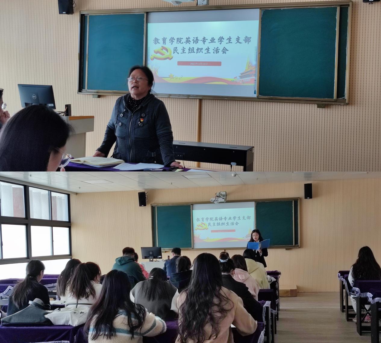汇报结束后王家云同志对教工党支部、学前教育学生支部汇报情况进行点评,孟向红同志对数学与应用数学学生支部、英语学生支部和汉语言文学学生支部汇报情况进行了点评。王家云同志在点评时对支部工作给予充分肯定,并提出要求:一是建立常态化学习工作机制,二是增强意识形态风险防范意识,三是加大青年教师组织发展力度,四是发挥支部党员教师在教学科研中的模范带头作用,他强调要加强党支部标准化规范化建设,进一步调动党员积极性,发挥专业优势,有效促进党建与发展的深度融合,以高质量党建推动学院高质量发展。孟向红同志对三个学生支部工作进行点评,肯定了支部在组织带领学生党员开展理论学习、志愿服务、发挥作用等方面取得的成绩,同时她要求支部认真落实整改措施,创新党员学习教育管理形式,发挥学生党员在学风建设、学生日常管理等方面的作用,把“党员好故事、书记好党课、支部好案例”工作抓好、抓落实,彰显党建品牌特色。
