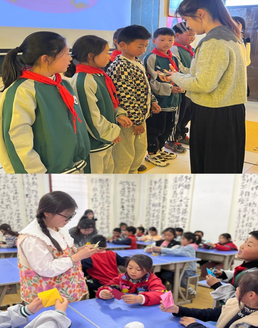 活动分为两组,第一组志愿者带领二、三年级的同学们做手工活动,首先是用彩纸折一顶帽子,用“帽子”的用途引导小朋友们认识、了解“雷锋”,知道雷锋叔叔的形象特征,知道帽子的用途具有抗寒性。接着志愿者们又用携带的超轻黏土,指导小朋友们捏制一朵小花敬献给亿万人民学习的榜样雷锋叔叔。小朋友们在简单的手工制作中认识和了解了雷锋。第二组志愿者以讲故事的方式向四、五年级的同学介绍雷锋的事迹,让小朋友们认识到,要学习雷锋助人为乐、与人为善的优良品德。引导小朋友们继承优良传统,从身边小事做起、从点滴做起,在学校帮助小朋友,在家里尊敬父母,争做新时代小雷锋。