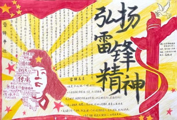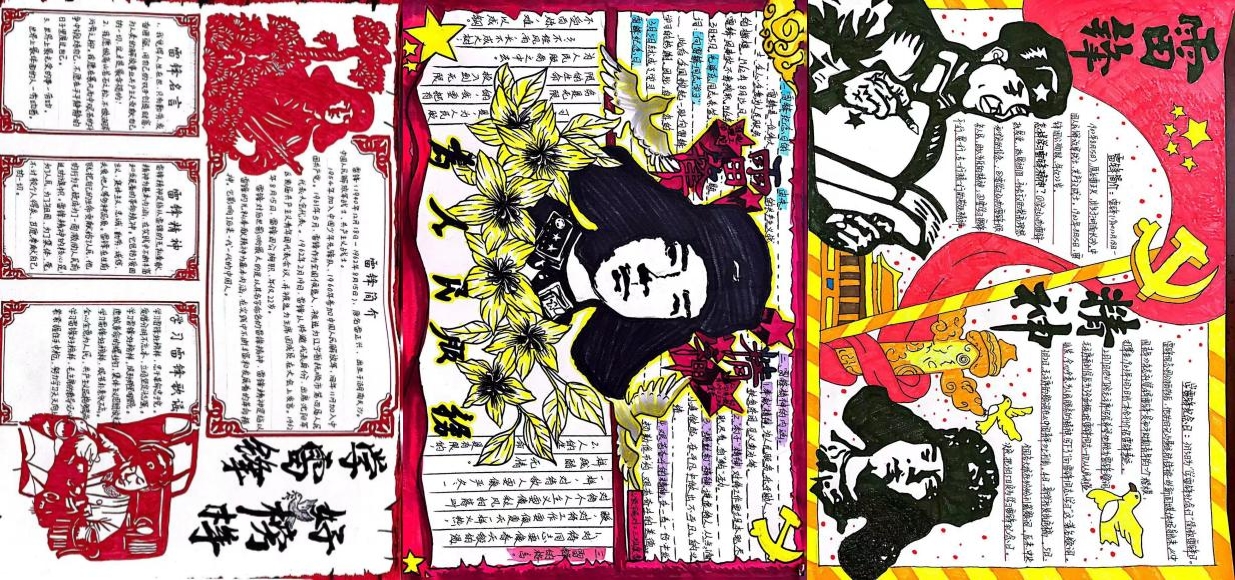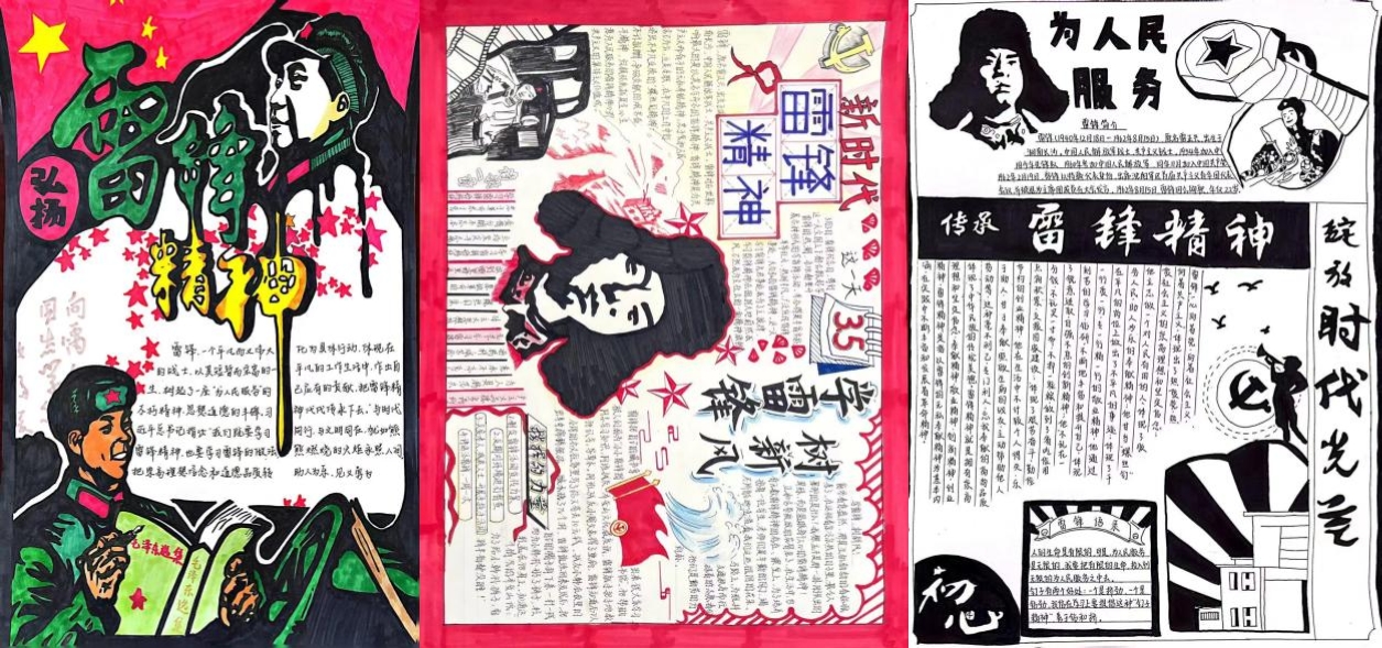 参赛同学以“雷锋精神”为核心,通过介绍雷锋生平感人事迹、绘画雷锋人物形象等方式进行创作。灵动鲜活的《学雷锋,践行动》;多姿多彩的《学雷锋,树新风》;质朴简约的《雷锋日报》。图文并茂,生动活泼,不仅展现出我院学子良好的创作功底,更彰显了同学们对雷锋精神的深刻感悟。