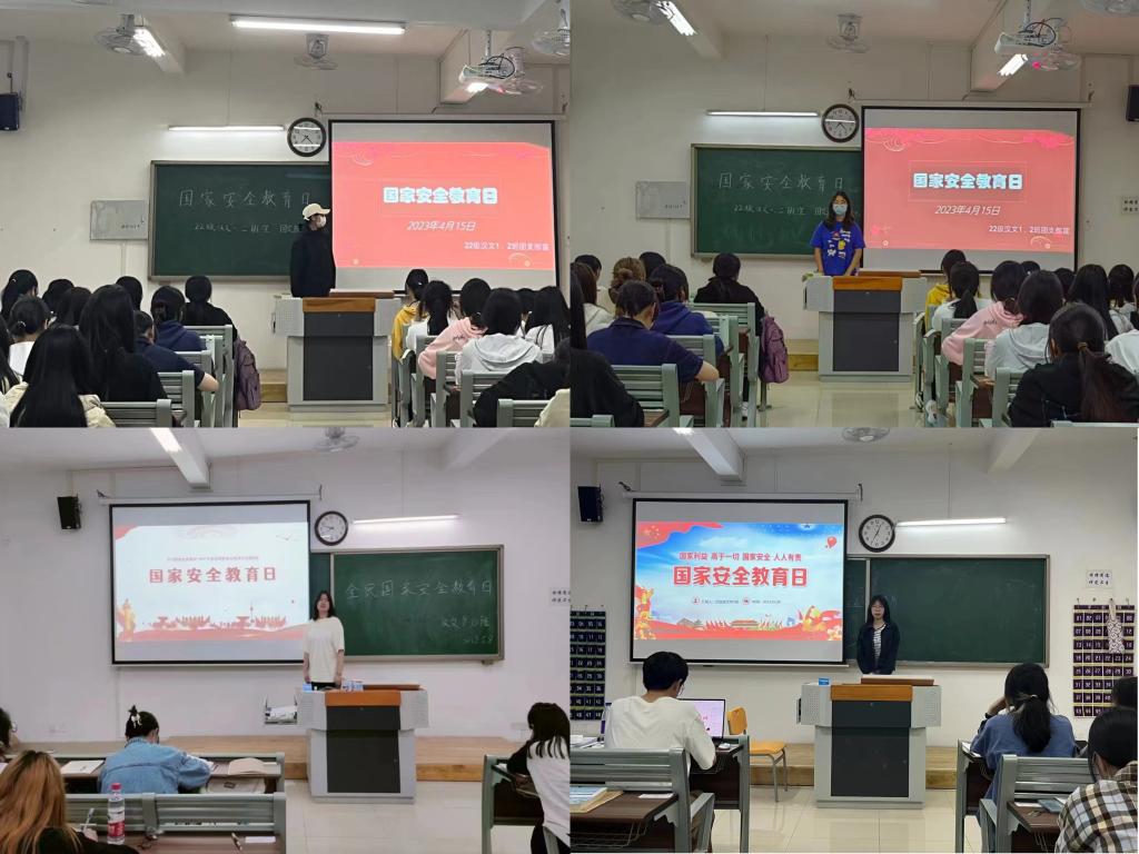 4月15日至4月22日,学院创新宣传方式,组织学生利用微信、微博等平台发布原创短视频和宣传标语参与“国家安全”话题接力和互动,进行宣传教育。
