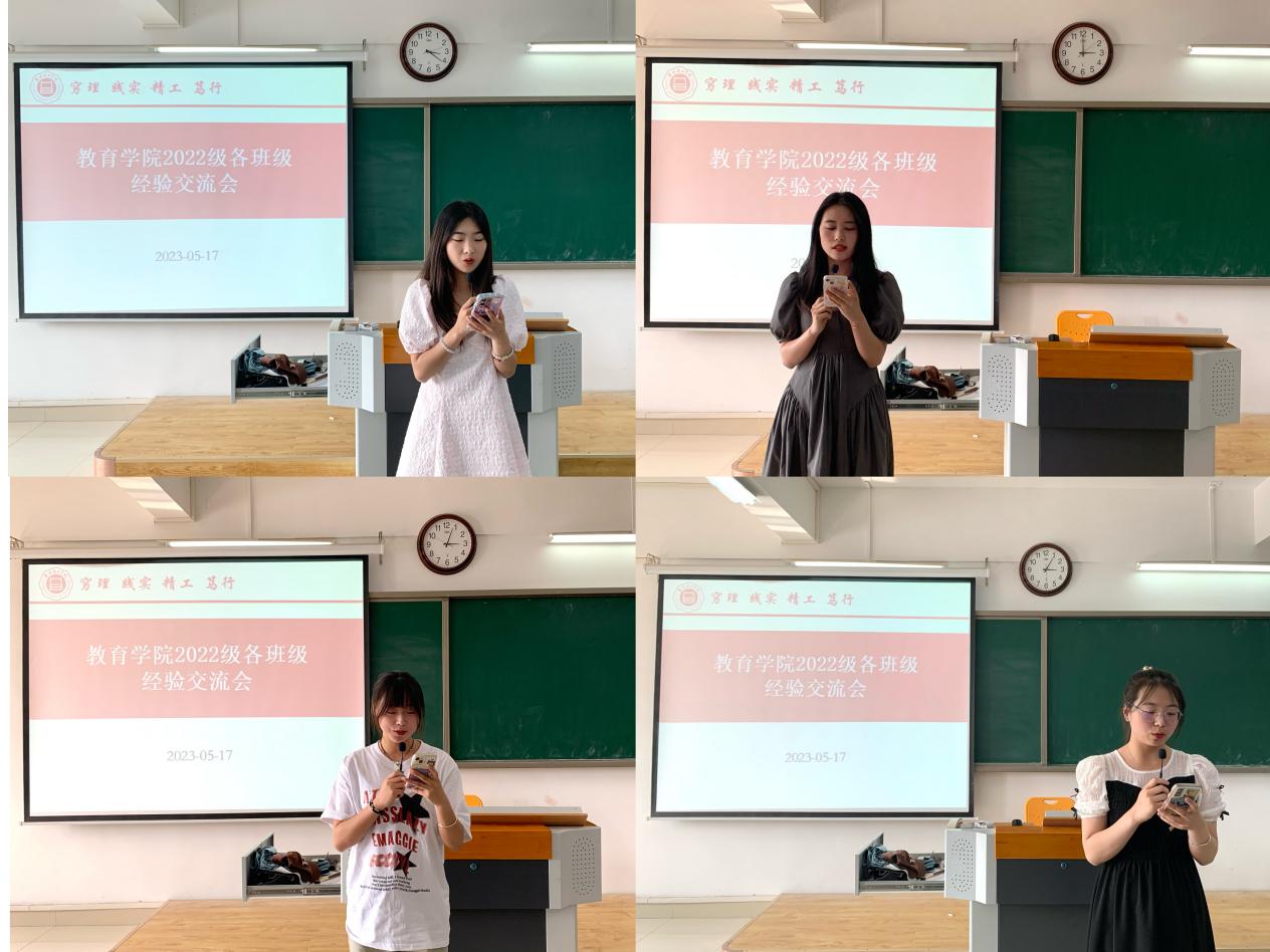 会议伊始,分管副书记孟向红对召开本次会议的目的进行了简单的介绍,她说本周正值学校期中教学检查,也是全校上下学习贯彻习近平新时代中国特色社会主义思想主题教育的重要时期,召开会议的目的就是要围绕“守初心、担使命、找差距、抓落实”的主题,调查了解查找工作中的不足和差距,听听大家对学校教学、管理、学院工作及校园文化建设等方面意见和建议,她希望大家在交流发言中结合自己班级的实际畅所欲言,通过交流分享各班相互学习、取长补短,推动班风学风建设。随后22级49个班级的班长或团支书分别进行了交流发言,分别从思想引领、学风建设、文体活动以及班干部的作用发挥等方面对班级建设的具体做法进行交流分享。