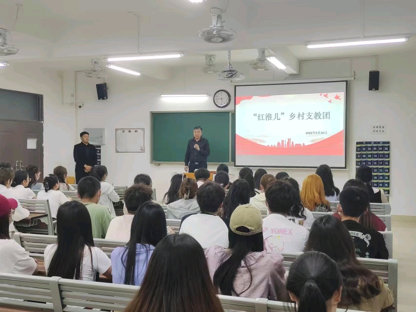 2023年5月26日下午,XK星空体育在1教415教室召开“红淮儿乡村支教团”成立暨动员大会,会议由支教团成员刘双同学主持,学院院长王家云、副院长孟向红,红淮儿社团指导教师张晓婷、陈慧慧及支教团的全体成员参加了会议。
