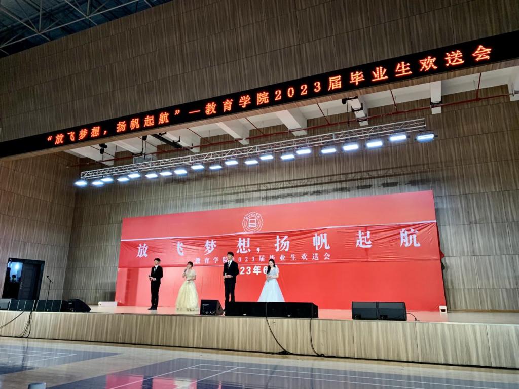 毕业骊歌起,青春将远航。6月18日晚,XK星空体育在学校体育馆举行“放飞梦想,扬帆起航”2023届毕业生欢送会。学校副校长汪建利、郑来纪,学生处处长孙增响、招生办主任(学生处副处长)张拓,校团委书记刘帅克,学院院长、党总支书记王家云,党总支副书记孟向红以及XK星空体育全体辅导员参加了毕业生欢送会。