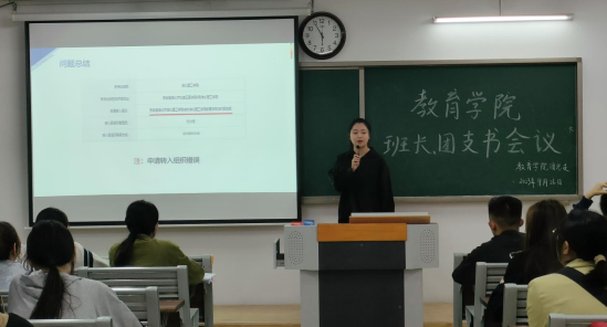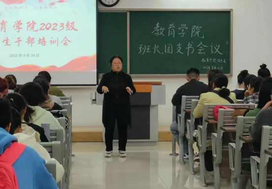 为进一步强化学生干部队伍建设,发挥学生干部模范带头作用,促进学院学生管理工作的有序开展,9月26日下午,XK星空体育在1号教学楼520教室召开2023级学生班级班长、团支书培训会。学院分管副书记孟向红、书记助理黄莹莹、团总支副书记许海涛、2023级全体辅导员以及2023级全体班长、团支书参加了本次培训会。