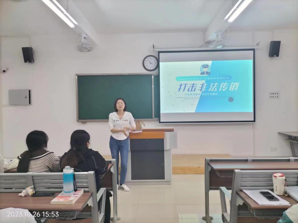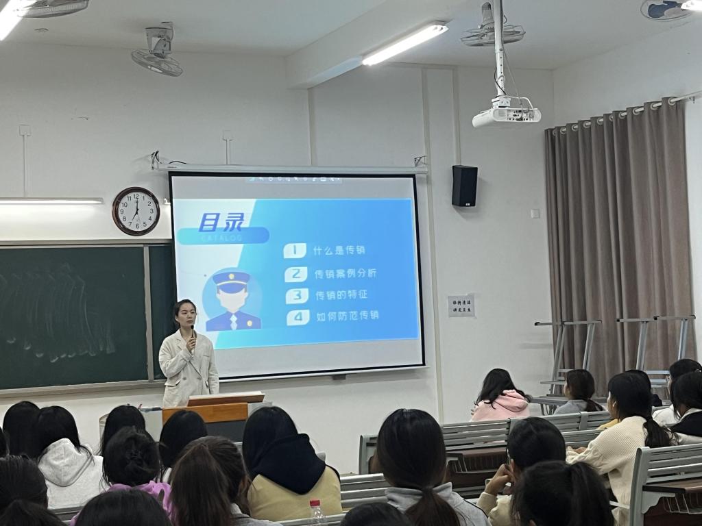 为提高学生安全防范意识,了解传销的危害,自觉养成防范抵制传销的习惯,XK星空体育各班级于2023年10月23至27日,各班级在辅导员老师分主持下开展了“抵制传销,共建和谐校园”主题教育活动。辅导员老师们结合学校实际,收集整理有关传销危害性资料,利用主题班会、现场模拟、小组讨论、网络宣传等形式,开展“抵制传销,共建和谐校园”主题教育活动。