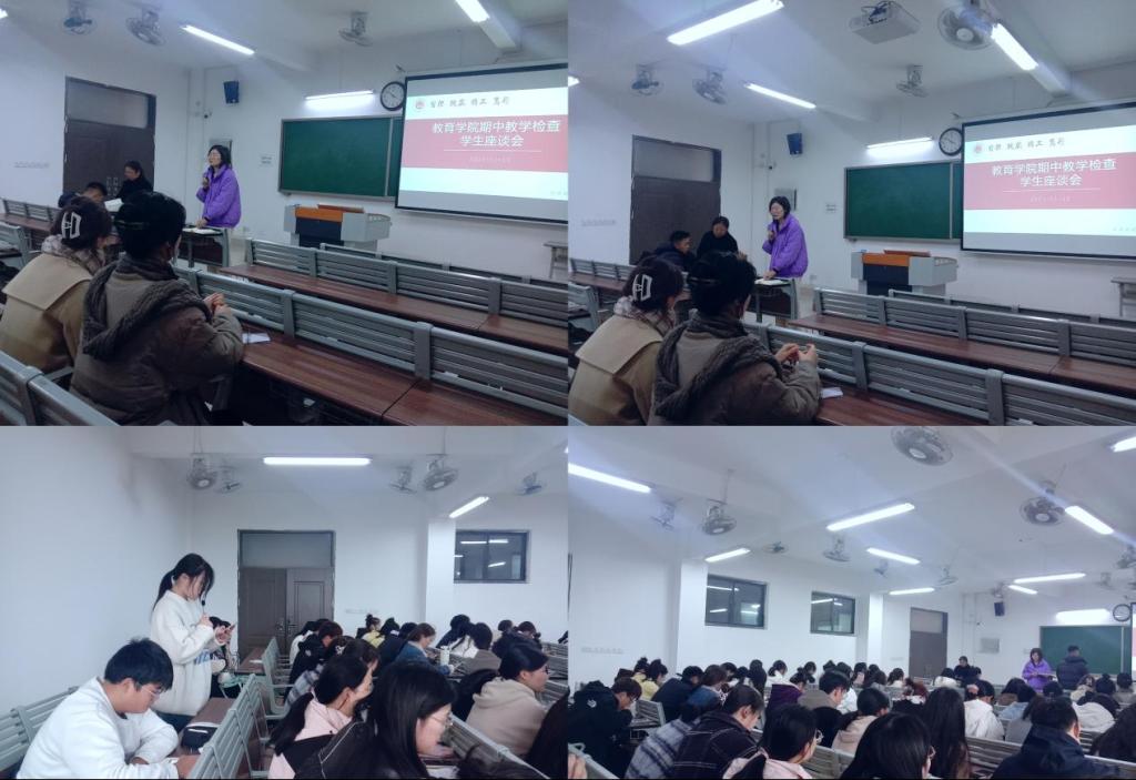 会议开始,主持会议老师介绍了期中教学检查学生座谈会是为了充分了解和掌握课堂教学信息动态,加强教与学的沟通,发挥学生在教学管理工作中的积极作用,提高课堂教学质量和教学管理服务水平,希望同学们结合本学期教学过程中的感受提出意见和建议。