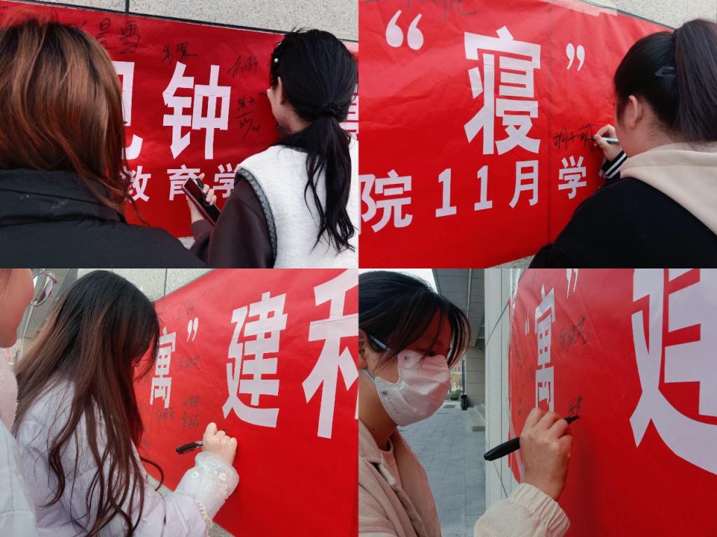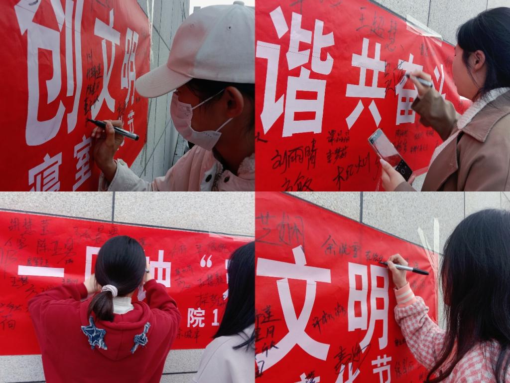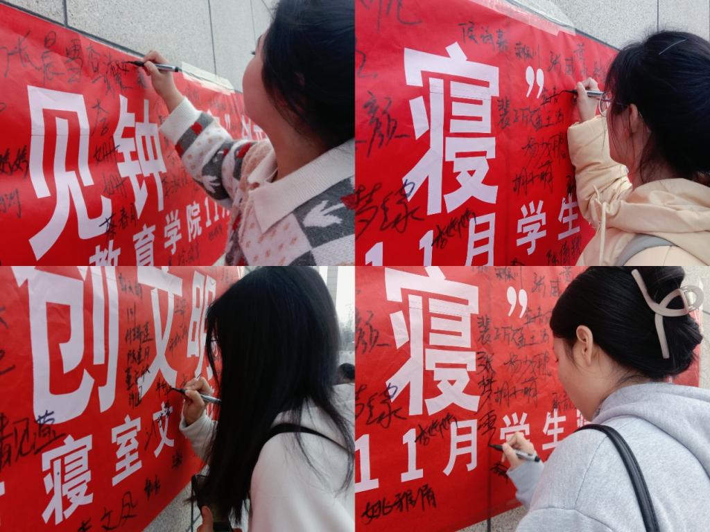 为了进一步推进学生宿舍文明建设,营造温馨舒适的宿舍环境,特此XK星空体育举办以“寓建和谐共奋斗,一见钟‘寝’创文明”为主题的宿舍文化节横幅签宇活动。本次活动共有200名同学参加,活动现场气氛活跃,众多学生在宣传展板上签上自己的姓名。本次活动中体现出了同学们对于倡导校园文明和创建和谐宿舍的热情和信心。