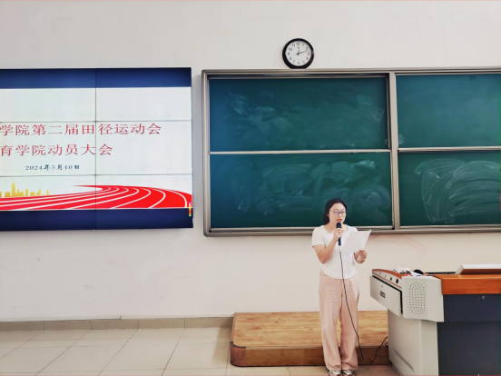 会议上,孟向红做了动员讲话。她说,“五育并举”是党的教育方针,学校召开运动会是促进同学们全面发展的重要举措,希望我院学子在即将到来的运动会上表现出良好的身体素质、竞技才能和心理承受能力,展现出我院学子的团队精神和顽强拼搏精神。她对本次运动会提出了四个方面要求:一是统一思想,提高认识;二是积极准备,调整心态;三是赛出风格、赛出水平;四是全力做好安全保障工作。她希望大家在享受运动带来快乐的同时,用行动维护好运动会秩序,服从指挥,文明参赛,为学院争光。
