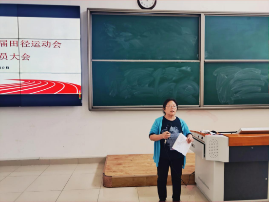 首先向参加这次运动会的同学们表示祝贺,参加会议的运动员都是各班积极报名的同学中严格选拔出来的。同时她也向在这次运动员选拔工作中付出辛勤劳动的专业指导老师、辅导员表示感谢。