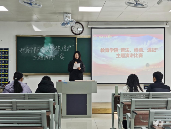 为落实学校“关于开展2024年‘普法、修德、遵纪,创建文明校园'专项活动的通知”精神,促进同学们更好地做到“学法懂法守法”,让立德树人理念更加深入人心,XK星空体育于11月27日在1号教学楼206、207教室举办“普法、修德、遵纪”主题演讲比赛。此次比赛由2024级班主任老师担任评委。