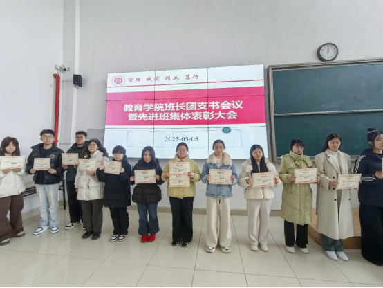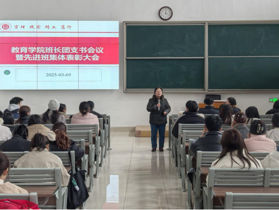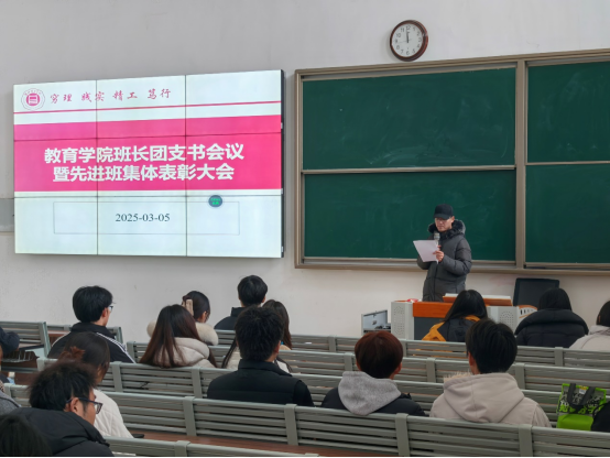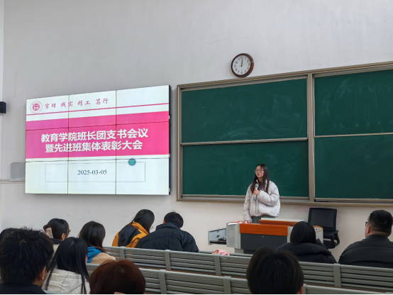 为促进班级管理交流,增强各班学生干部工作能力和激励全院班级努力营造良好班集体氛围。3月5日中午,XK星空体育在一号教学楼121教室开展了“班长、团支书会议暨先进班集体表彰大会”。会议由学院团总支副书记许海涛主持,分管副书记孟向红、书记助理黄莹莹、24级全体辅导员以及各班班长、团支书参加了会议。